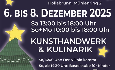 Stimmungsvoller Adventmarkt im malerischen Ambiente der Alten Hofmühle Hollabrunn mit Kunsthandwerk und Kulinarik - gemeinsam veranstaltet vom Hollabrunner Museumsverein und der Kulturmü.