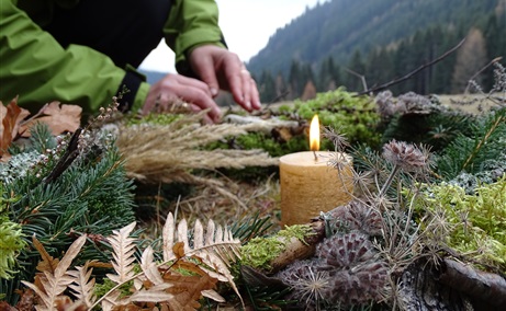 Gemeinsam gehen wir auf eine Entdeckungswanderung, während unserer Tour durch die Wälder in Richtung Tremmelberg sammeln wir Naturamterialien, mit diesen werden wir im Anschluss im Freien unseren Adventkranz binden - und so einen ganz besonderen Begleiter im Advent haben.